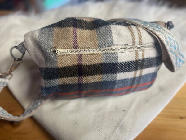 Sac banane à carreaux en tissu polaire avec fermeture éclair. Poche à l'avant, et petite poche dans le sac. Tout est fait main.