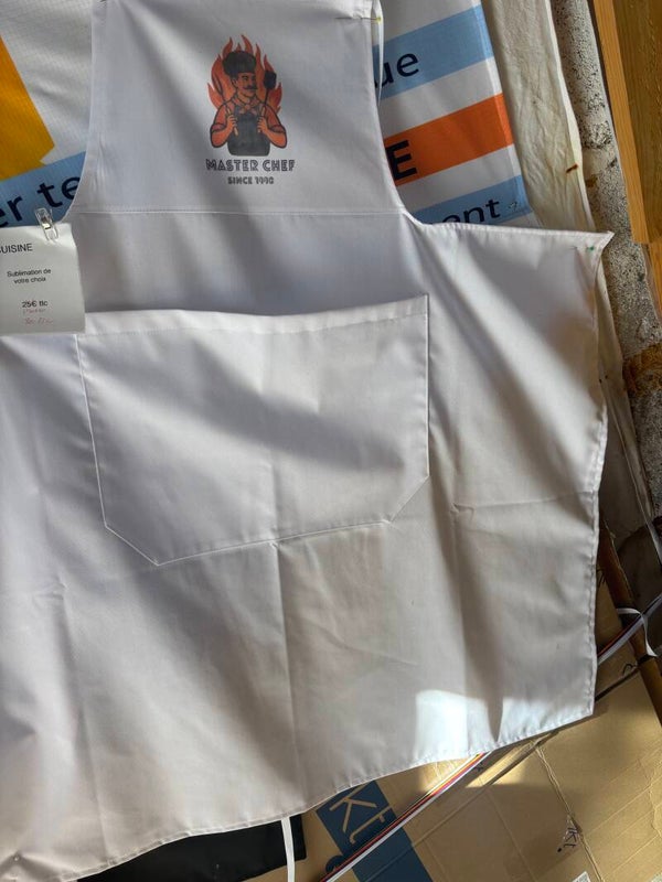 Tablier de cuisine grand format avec le logo ou insdription de votre choix par sublimation ou en broderie